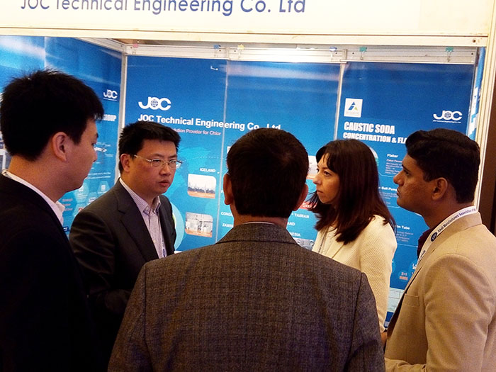 ????????作為人口大國,印度的基礎(chǔ)化工燒堿工業(yè)卻只有中國的十分之一,是印度未來具有潛力化工市場。近年來,印度燒堿行業(yè)需求明顯,技術(shù)發(fā)展、設(shè)備制造等與印度國內(nèi)外的聯(lián)系日益頻繁。本次由AMAI舉辦的展會,我司已經(jīng)是多次參展,公司近幾年在印度氯堿行業(yè)中從起初的近四十套整流系統(tǒng),逐漸擴(kuò)展到現(xiàn)在的從陶瓷膜鹽水精制、離子膜電解槽、納濾膜鹽水除硝系統(tǒng)和固堿蒸發(fā)及濃縮裝置等多套系統(tǒng)紛紛在印度、泰國、法國、比利時、俄羅斯、中東等地成功開車投運(yùn),JOC的品牌已在印度國內(nèi)具有相當(dāng)高的知名度,很多客戶慕名而來,現(xiàn)場和我司進(jìn)行了很多商務(wù)及技術(shù)上的討論。