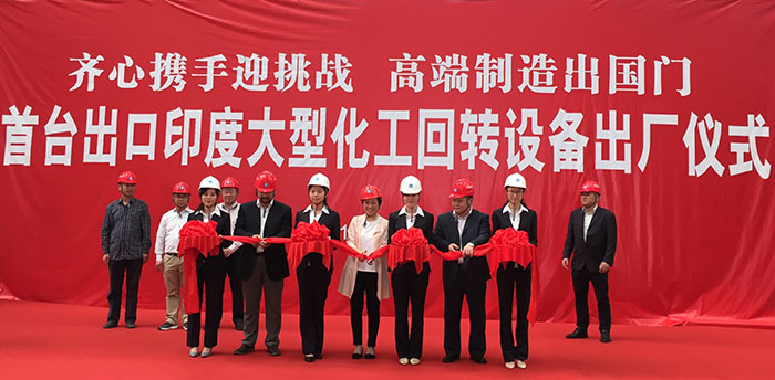????????我司承包設(shè)計(jì)、制造、指導(dǎo)安裝及調(diào)試的印度日處理810噸純堿項(xiàng)目關(guān)鍵設(shè)備煅燒爐于2016年5月12日在制造廠南京中建化工設(shè)備制造有限公司順利舉行出廠儀式。江蘇海企技術(shù)工程股份有限公司董事長林敏女士出席并致辭。