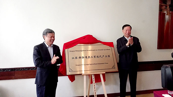 ????????會上,江蘇省商務廳廳長馬明龍宣讀了“關于同意確認江蘇-新陽嘎農(nóng)工貿(mào)現(xiàn)代產(chǎn)業(yè)園為江蘇省境外產(chǎn)業(yè)合作集聚區(qū)的批復”文件。羅志軍書記、呂友清大使信步上前,為江蘇省第二家省級境外產(chǎn)業(yè)合作集聚區(qū)揭牌,金色的產(chǎn)業(yè)園銅匾在燈光下熠熠生輝,全場掌聲雷動。